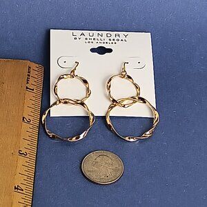 Twist Circle Scuptured Double Hoops Hook Dangle Earrings Gold Tone Casual