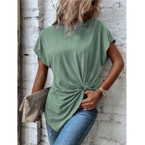 Twist Detail Green Tee Shirt Short Sleeve Round Neck