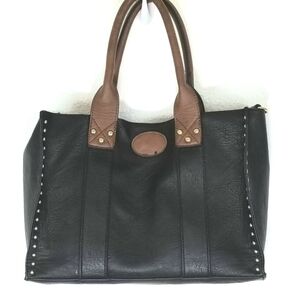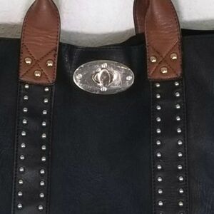 Twist Lock Studded Vegan Leather Handbag Set. Optional adjustable shoulder strap. Gold-tone hardware. Removable inner bag has 1 zipper pocket, 2 slip pockets, and zipper closure. Gently pre-owned.