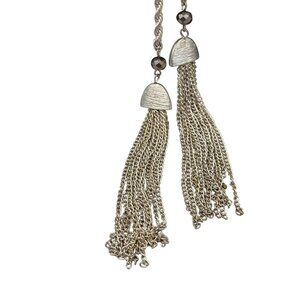 Twist Rope Chain Tassel Lariat Necklace Silver Tone Chic Elegant Minimalist