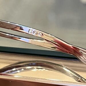 A brilliant line of gleaming, light blue stones follows the gently curving lines of the bangle, adding glittering radiance to the appeal of the design. On-trend and refined, this bangle complements your everyday looks with a brilliant touch.