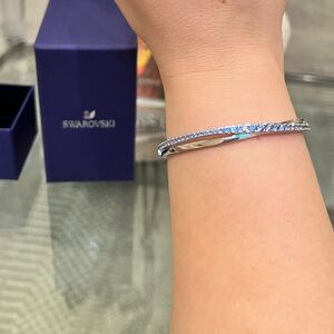This beautiful bangle celebrates 125 years of Swarovski sparkle with understated elegance in a modern interpretation of the spiral trend.