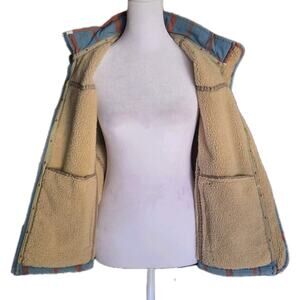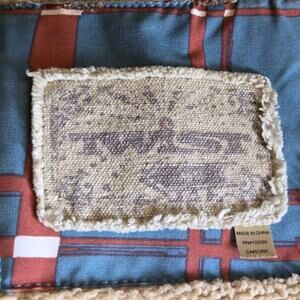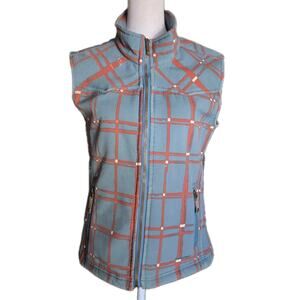Twist Teal Red Abstract Plaid Vest Sz Med Fleece Lined Pockets Cabin Cottage SEE