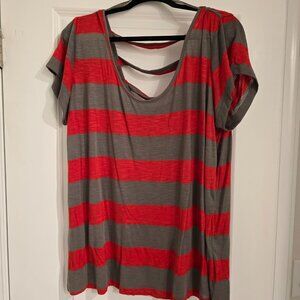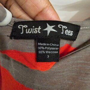 Orange and gray Twist Tees Blouse-- beautiful for the office as well as going out! Runs big. Ideal for blazer outfits!