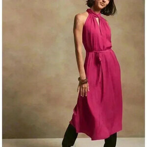 Brand New With Tags Beautiful Banana Republic Twist-Neck Collar With V-Front Keyhole Satin Midi Dress