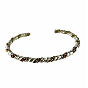 Twisted Copper and Steel Bangle Bracelet Cuff Swirl Two Tone Jewelry
