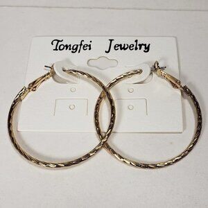 Twisted Gold-Tone Hoop Earrings – Luxe 1.75" Leverback Statement Design Jewelry