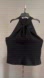 This elegant black halter top is perfect for any occasion. Its sleek design offers a sophisticated look. Pair it with your favorite accessories for a chic ensemble.