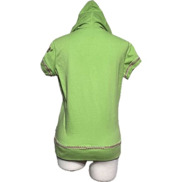 Twisted Heart Lime Green Short Sleeve Heavy Stitched Appliquéd Hoodie Medium