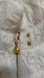 Beautiful long white puffer jacket. Front gold heart zipper and doble buttons.