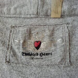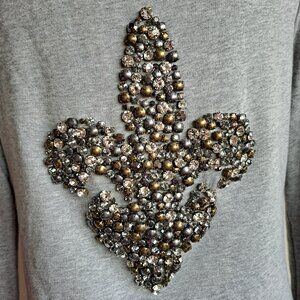 Twisted Heart Women's Grey Cardigan Sweater with Fleur de Lis Size S