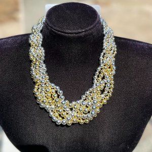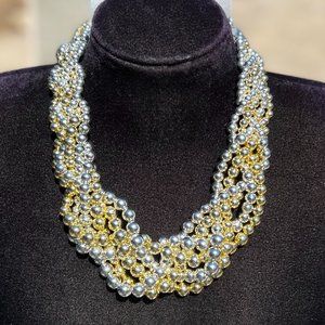 Twisted Multi Strand Gold Silver Color Pearl Necklace Spring Summer Vacation NWT