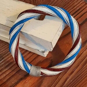 Twisted Rattan Bangle Bracelet Blue White Burgundy