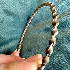 Elegant twisted rope design bangle in silver metal — I don’t know what kind. Perfect for adding a touch of sophistication to any outfit.