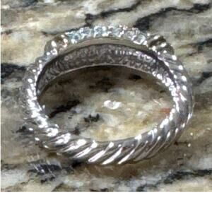 Twisted Silver Tone Ring With Pave Rhinestones size 8