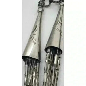 A beautiful and heavy twisted 6 strand liquid silver necklace with small turquoise beads. Necklace cones are marked.
