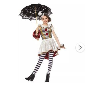 Includes dress, leggings, headband with hat attached, collar and wrist cuffs