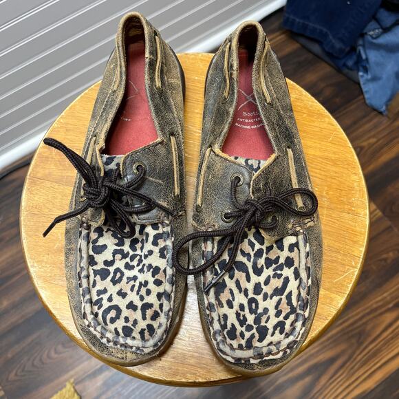 Twisted X Boat Shoe Driving Moc Leopard Print Size 8 Women’s
