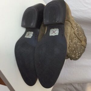 Stylish distressed cowgirl boots with intricate stitching. Durable leather with Rubber sole and round toe for stability and comfort.