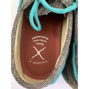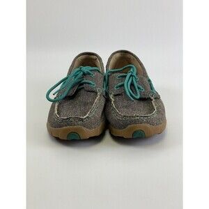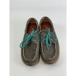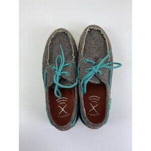 Twisted X Eco Boat Shoe Driving Mocs Brown Canvas Teal Lace Up Comfort Womens 6