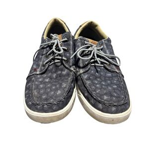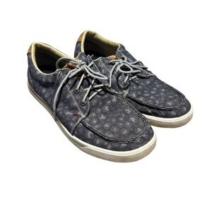 In great pre-owned condition with no flaws or damage, extremely minimal wear. High-quality and super comfortable Moc tennis shoes from Twisted X. The style is Hooey Loper, model number WHYCO25. Blue, grey, and patterned. Size 9 M women's.