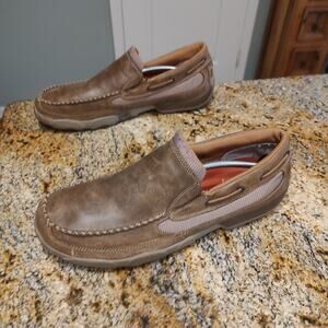 Twisted X Slip-On Driving Moc Brown Bomber Loafer Country MDMS002 Men's Sz 13M