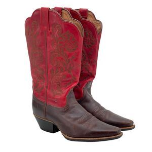 Twisted X Western Boots Red Brown Stitched Square Toe 0027 Women’s Size 7B (HF1)