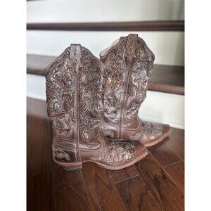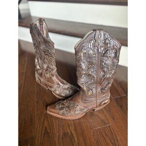 Twisted X Western Brown Python Inlay Leather Boots Women's size 7