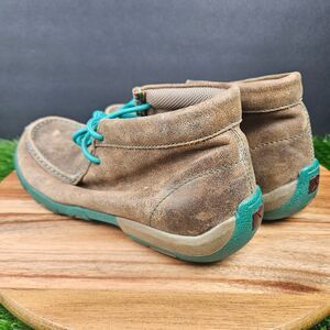 Twisted X Womens Chukka Driving Mocs 6.5 M Leather Brown Turquoise Lace Up Boots