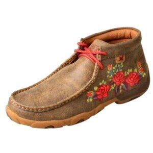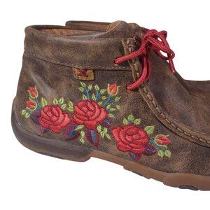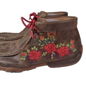 Twisted X Women's Embroidered Floral Rose Chukka Driving Moccasins Sz 9 M Brown