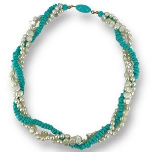 Twisted faux pearl and acrylic turquoise beaded necklace Womens 16"