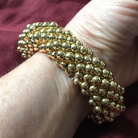 Strands of Golden beads twisted in cute stretchy bracelet. Fun!