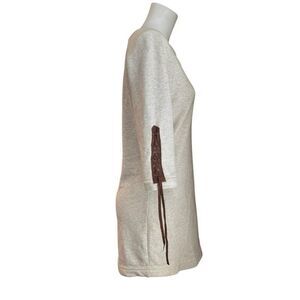Twisted Heart Medium Oatmeal Fleece Tunic Mini Dress Leather Trim Boho Festival
