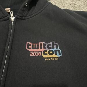 Twitch Con 2018 San Jose Hoodie Mens Size M Black Zip Hooded Gaming Streaming