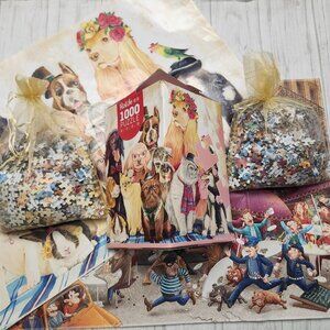 Two 1000 Pieces Large Puzzles Pretty Dogs and Coffee Cafe Scene Rolife