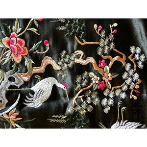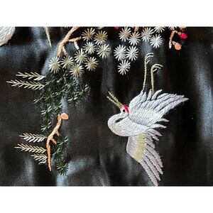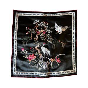 Two 16" x 16" Embroidered 100% Silk Cushion Covers Crane & Floral Designs