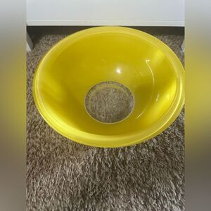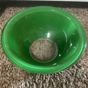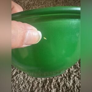 Two 1980’s Pyrex primary mixing bowls. Please look at photos for condition. There is a small yellow spot on the green bowl and the yellow bowl has two discoloration spots and some minor color loss from scratches.