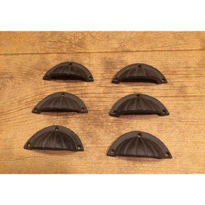 Two (2) Antique Cast Iron 4" wide Seashell Drawer Finger Pulls Two (2) 0184-0034