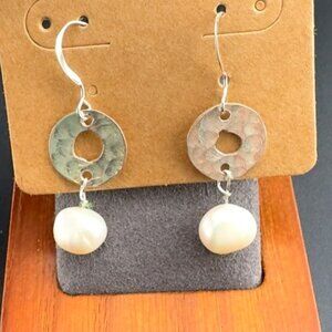 Two 2 Artisan Sterling Silver & Pearl Dangle drop Earrings