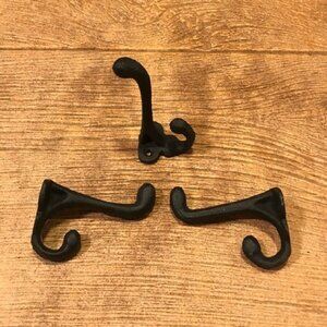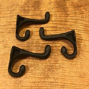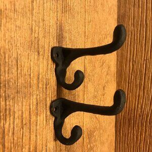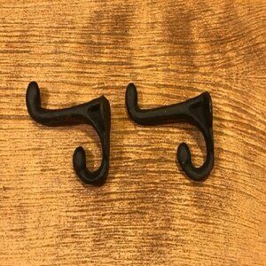 Two (2) Cast Iron Black 2 3/4" tall Double Wall Hooks Two (2) 0170-01202