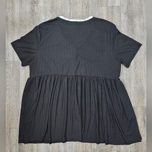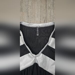 Elevate your style with this elegant black top featuring striking silver accents by Two 2 Fly. Perfect for any occasion. In good pre-owned condition.