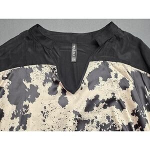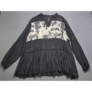 Two 2 Fly Womens 2X Shirt Top Blouse Black Cow Print Tiered Tunic Lightweight