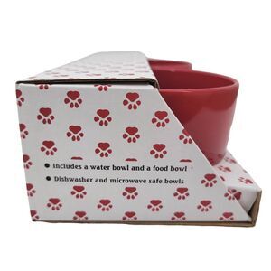Two 2 Piece Pet Bowl Set Red Christmas Reindeer Water Food Cat Dog Ceramic NEW