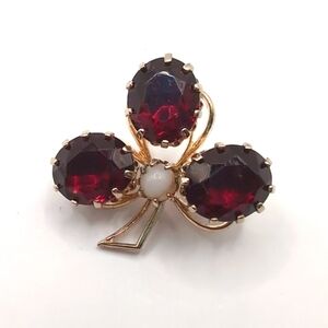 Two (2) Garnet Glass Faux Pearl Gold Tone Brooch / Pins