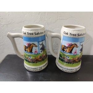 Two 2001 Oak Tree Racing Santa Anita Park Beer Mug Stein Ltd Ed Goodwood Cup