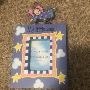 Two 2x3 decorative frames. “My Little Angel” has an Angel on top of the frame. Holds a 2x3 photo but frames actual size is 5 inches wide and 6