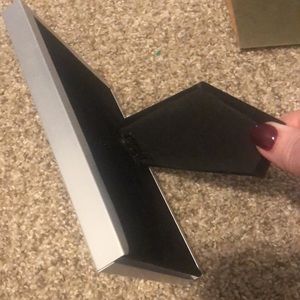 Inches tall. The silver frame which says “Angel” below the photo is a 2.5 x 3.5 picture frame but is 5 inches wide x 7 3/4 inches wide. Frame is a silver metal like material and does have several scratches. Both frames are brand new and have never been used.