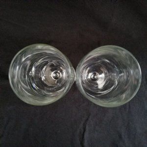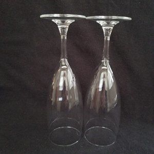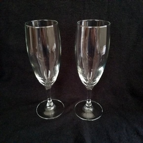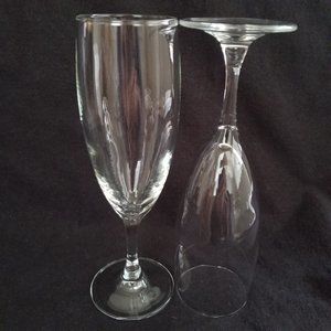 Bottom side of each footed flute glass is embossed with the word “FRANCE”.