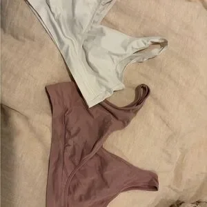 Two Auden nursing bras. Smooth, stretchy fabric. Simple silhouette for easy access.