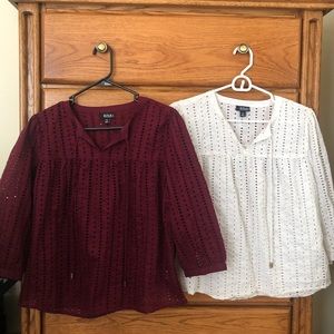Two A New Approach tops. Both medium petites in excellent used condition. Eyelet detail on entire shirt. Can be dressed up or down! Made from lightweight cotton, perfect for summer!